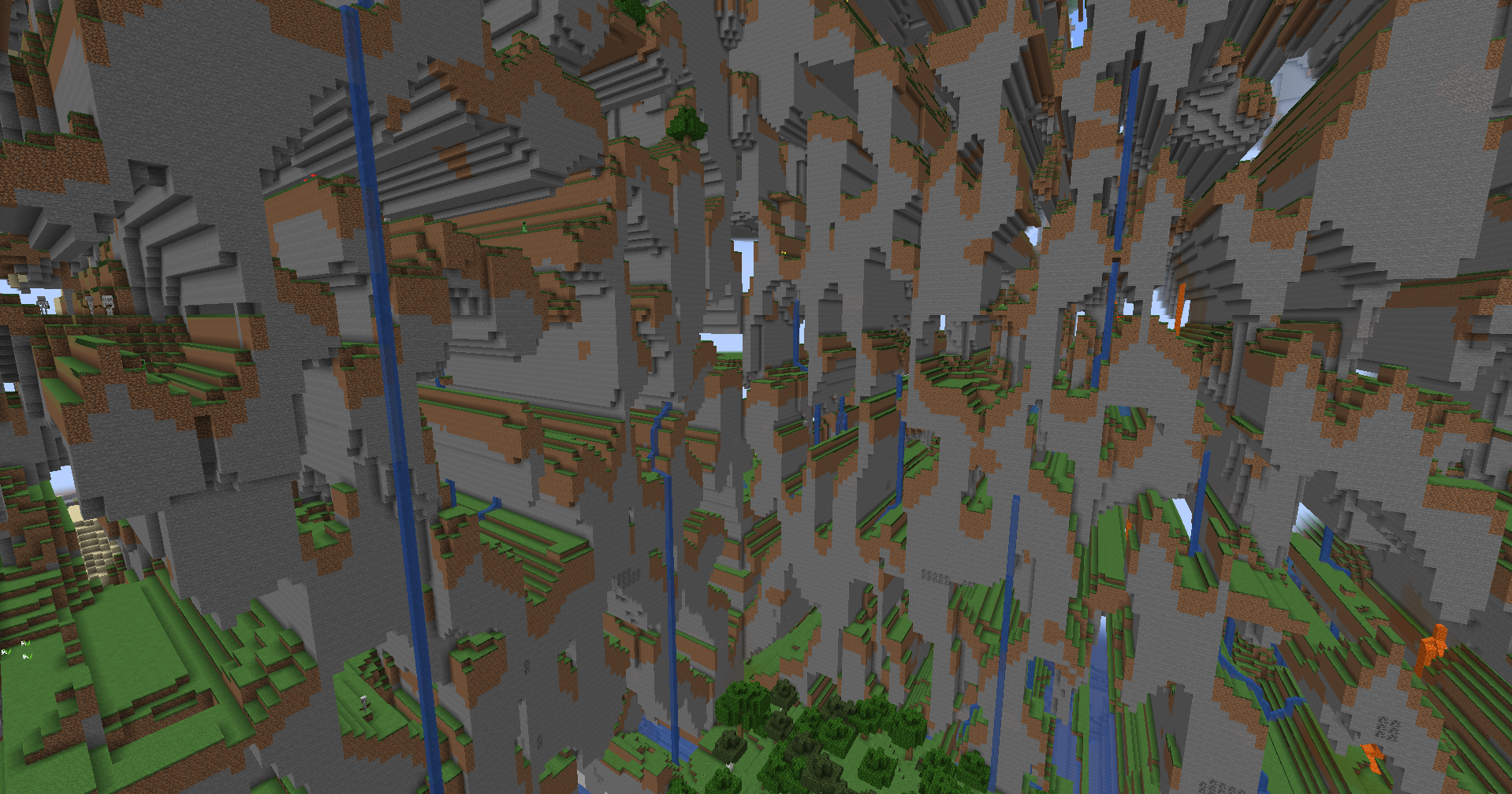 짜잔~ 아래와 같은 파랜드(Far Lands)가 보이게 됩니다!